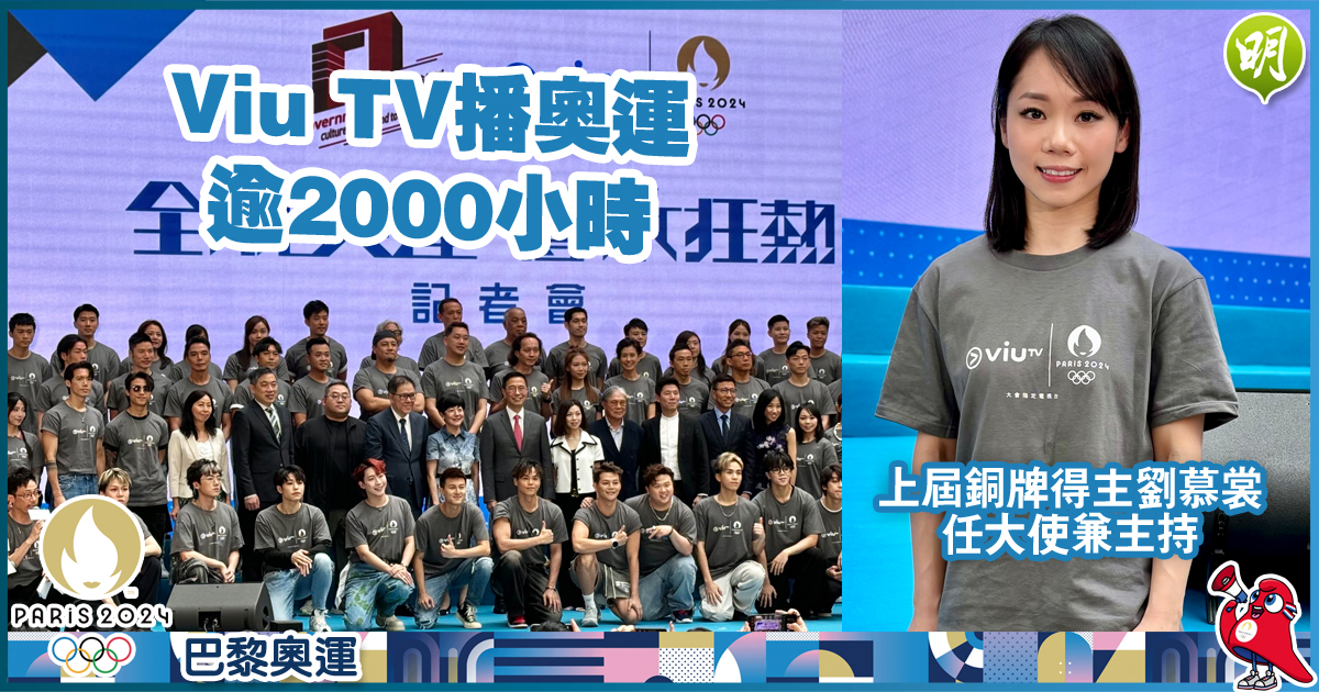 巴黎奧運下月26日開幕,其中一間本地指定直播電視台Viu TV今午(28日)在奧海城舉行記者會,公布其17條數碼頻道將提供逾2000小時直播及重溫內容。上屆東京奧運空手道女子個人形銅牌得主劉慕裳更擔任Viu TV巴黎奧運大使兼主持,稱期待港隊「女飛魚」何詩蓓(Siobhan)的表現。