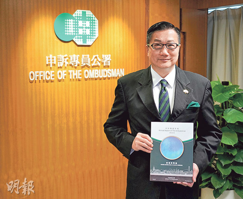 【明報專訊】申訴專員公署昨發表2023/24年度年報,年度內公署共接獲4351宗投訴,為近5年新低,較前年度5357宗減少約18.8%。連同前年度轉入個案,公署完成4397宗投訴。上年度涉及最多投訴的政府部門為房屋署,共463宗;而經全面調查後結案的投訴共95宗,其中38宗結論是投訴成立或部分成立,當中運輸署涉14宗佔最多。公署就全面調查個案向部門或機構提出共80項建議,截至3月31日,有67項已獲接納並同意落實,其餘13項則考慮中。