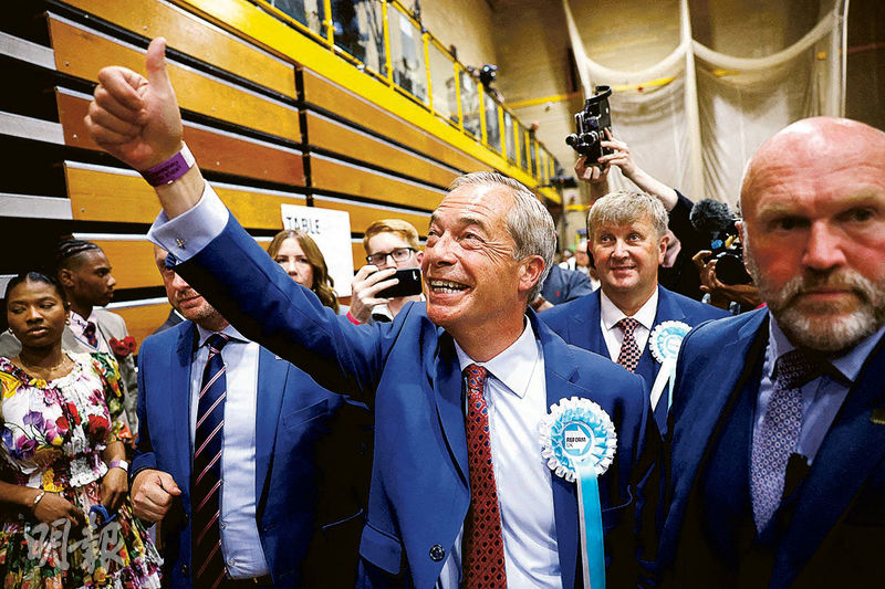 【明報專訊】右英國改革黨黨魁法拉奇(Nigel Farage)第8次參選,終在埃塞克斯郡的克拉克頓(Clacton)選區勝出,首度當選下議員。改革黨合共獲5席。