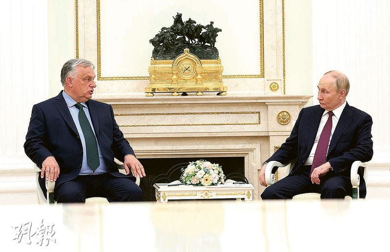 【明報專訊】在周二出訪烏克蘭後,立場親俄的匈牙利總理歐爾班周五(5日)出訪莫斯科,獲俄羅斯總統普京在克宮會面,討論俄烏戰爭,惹來歐盟高層和成員國領袖憂慮。適逢匈牙利本周一起成為歐盟輪任主席國,而北約峰會下周二將登場,時機引起更大爭議,歐盟和北約皆表明匈方並非代表組織對俄交涉。烏克蘭外交部發聲明表不滿,強調「不接受沒有烏克蘭的涉烏協議」原則不可動搖。