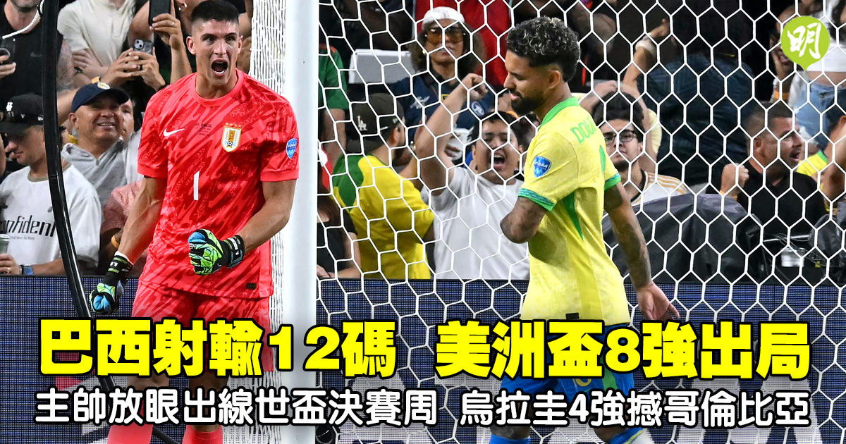 美洲盃8強︱巴西射輸12碼8強出局 主帥放眼出線世盃決賽周 烏拉圭4強撼哥倫比亞 (22:10)