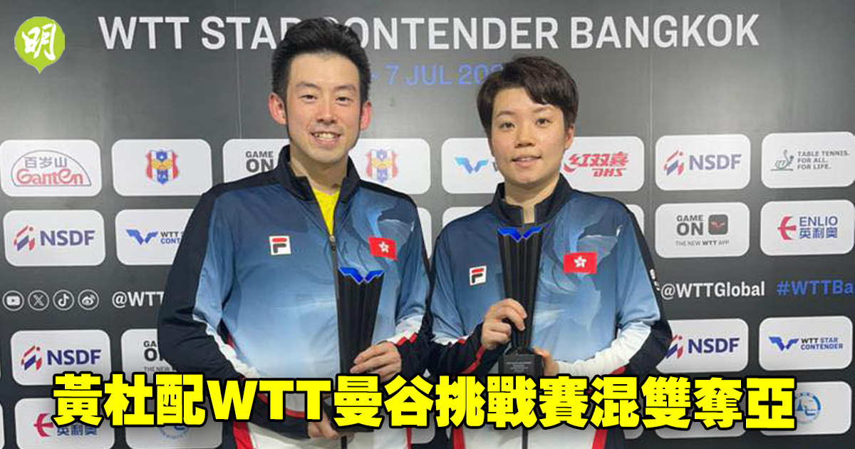 WTT乒乓球曼谷挑戰賽今(7日)煞科,港隊首席混雙組合黃鎮廷/杜凱琹於決賽不敵日本隊組合張本智和/早田希娜收穫亞軍;國家隊「獨苗」林高遠則在男單決賽以0:4不敵單站3冠的日本隊星將張本智和。