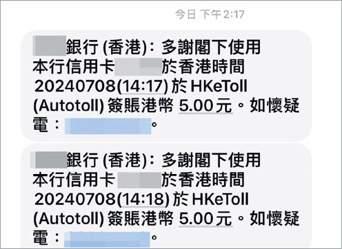 該名受影響讀者表示,他昨午4時許及6時許兩次致電易通行熱線,分別獲職員告知「所有系統down機」及「冧晒、更新中」,職員建議他翌日再登入查看,故不相信系統約4時已經回復正常。他稱信用卡被扣款5元兩次,至昨晚沒收到運輸署任何通知解釋事件及處理款項。本報記者昨傍晚約5時以市民身分致電易通行24小時客戶服務熱線,職員表示目前正在更新系統,着記者暫時不要理會該些短訊,稍後再登入查看。