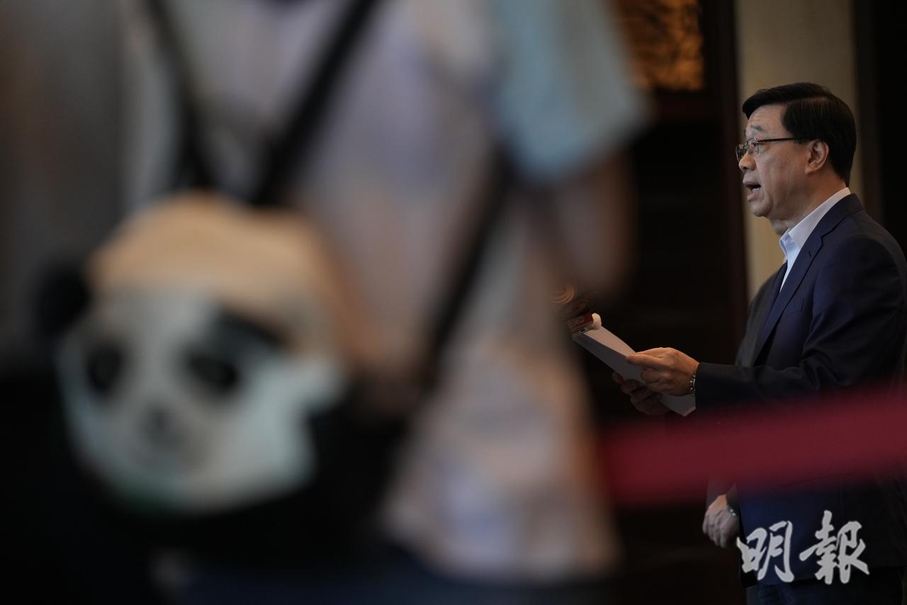 至於海洋公園需否另設展館安置來港大熊貓。李家超指過往經驗顯示,每隻熊貓均有一個展館,政府稍後會向海洋公園反映內地專家的意見。