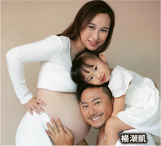 【明報專訊】楊潮凱與老婆江玉儀2013年結婚,育有6歲囡囡Catherine。今年2月中楊潮凱在社交平台報喜,宣布老婆懷有第二胎,開心將變四口之家。他昨日在社交平台透露第二胎BB性別,興奮表示老婆今胎佗仔,湊成「好」字,貼出親吻老婆肚子、囡囡跟媽咪咀嘴照片和全家福,大曬溫馨。