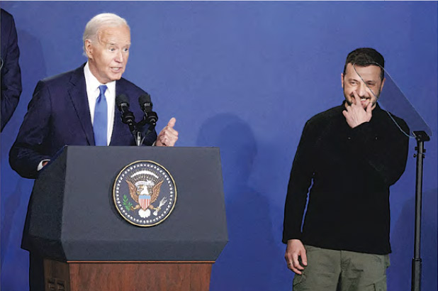 拜登上月底與前總統特朗普電視辯論時表現失準,持續有民主黨人呼籲拜登退選。拜登雖一再表明會繼續參選,然而他周四的連番口誤,恐未能平息憂慮。拜登先是在峰會介紹澤連斯基時稱:「現在我想把時間交給有勇氣亦有決心的烏克蘭總統,各位先生女士,普京總統。」拜登隨即更正,辯稱因太專注於擊敗俄羅斯總統普京而口誤,澤連斯基亦為他解圍,稱:「我比普京好。」