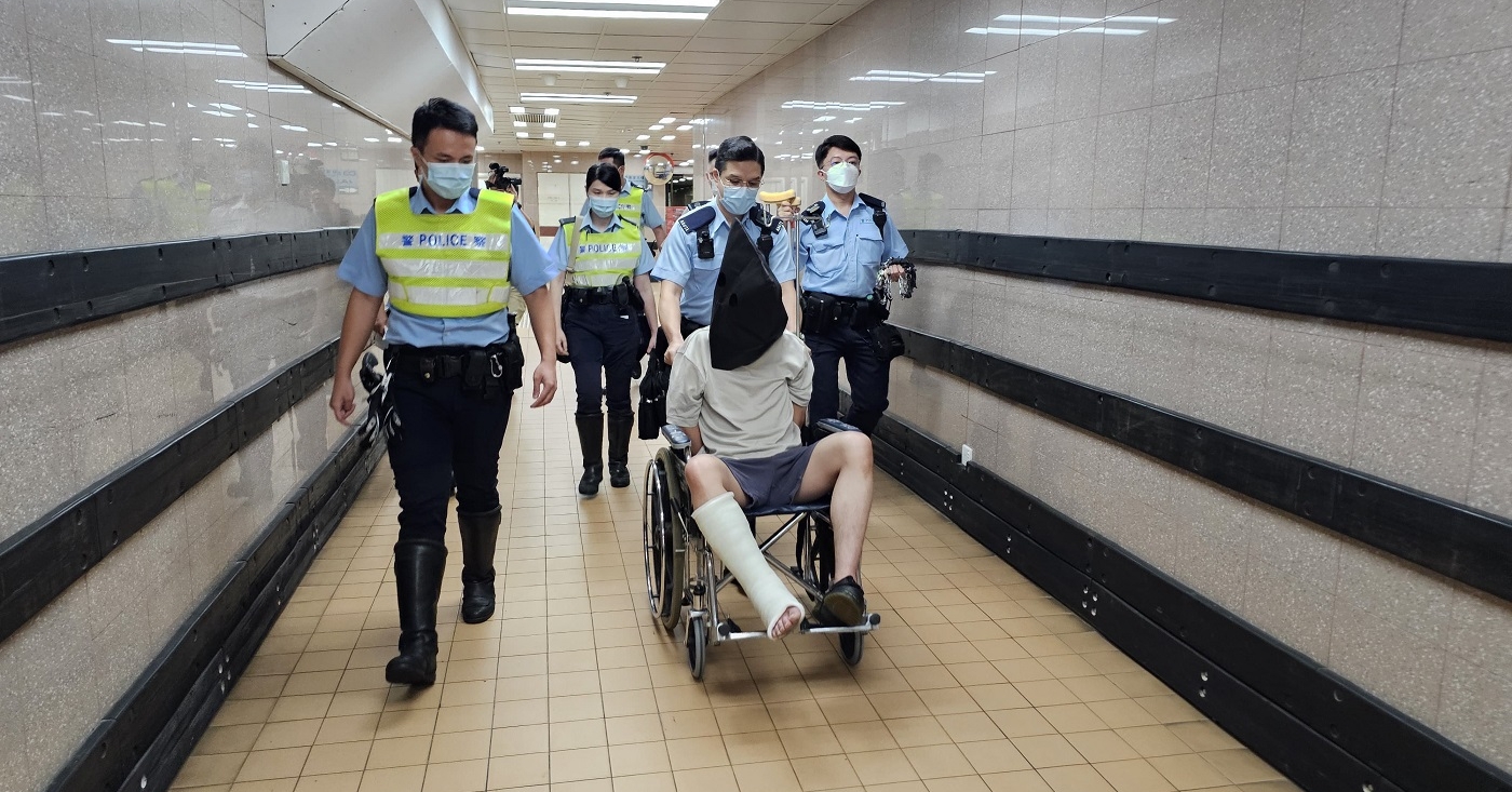 男子上周二到伊利沙伯醫院探望傷重的妻子,他涉趁兩名交通警離開病房時,突然用手襲擊警員,並從後企圖搶其中一警的佩槍,另一警見狀立即上前出手制服林。據了解,警員佩槍無離開過槍袋。事件中一名男警手部受傷。現場所見,右腿打石膏、坐在輪椅上的男事主黑布蒙頭被警員帶走,據悉他無精神病紀錄。案件列作襲警及企圖搶掠。