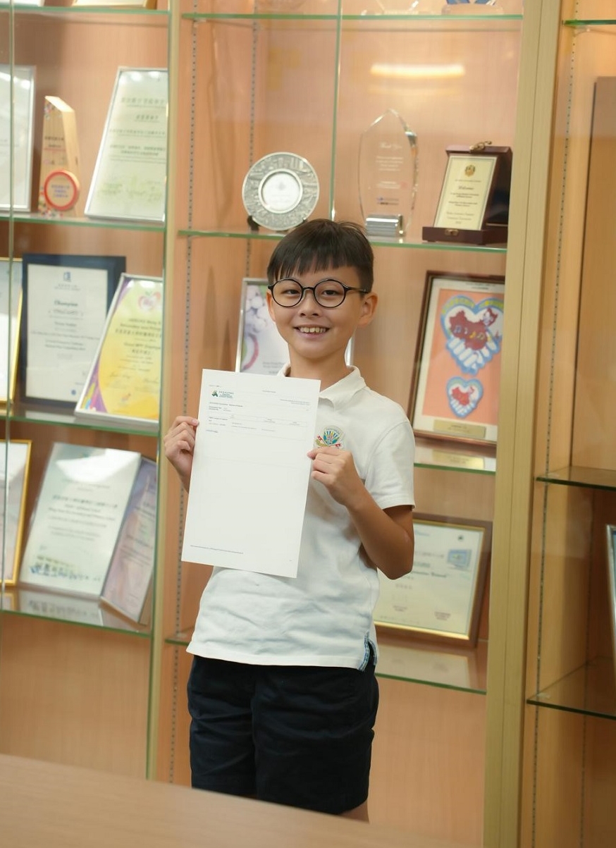 中學文憑(DSE)今日(17日)放榜,今屆文憑試年紀最小的考生9歲。來自浸大附屬王錦輝中小學的學生梁智仁,以9歲之齡越級挑戰應考數學必修部分及延伸部分單元二,分別考獲5*及5**成績。