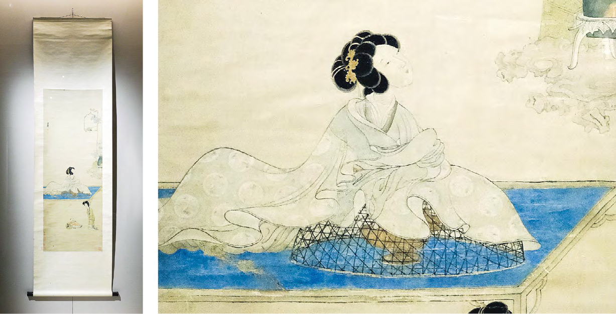 眾多珍品中,出自明代「變形主義」繪畫大師陳洪綬之手的《斜倚薰籠圖》,是最值得關注的展品之一。上海博物館副館長陳杰形容它為「精品中的精品」,是陳洪綬中年時期的代表作,現為國家一級文物,罕有於上海博物館以外地方展出。作品描繪貴族女子悠閒地享受薰香,只見她斜倚於一薰籠之上,裙裾半掩薰籠,以籠中的鳥形香爐薰香衣物。作品刻劃入微,場景生動,着色細膩。上海博物館工藝研究部主任施遠指出,陳洪綬在中國人物畫方面的藝術成就非常高,仕女是他的主要題材。《斜倚薰籠圖》中展示了中國傳統用香的經典場景,同時亦反映了晚明時期文人士大夫家族中的生活狀態。他指,晚明是復古風氣盛行的時代,「因此畫作不僅是一件擬古、仿古的創作,也是真實場景紀錄,展示薰籠在日常生活的作用,例如黃梅天以薰籠烘乾衣物或冬季取暖之用 」。