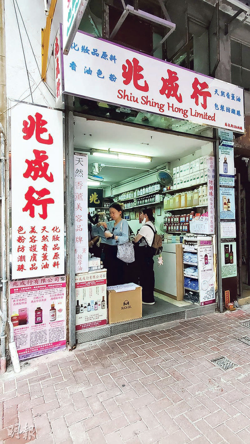 【明報專訊】走出展覽,滿腦子仍是古香古色的香爐、香囊,以及那陣陣撲鼻而來的香氣?不妨繼續在香港本地尋香吧。「現在我們來到摩利臣街和蘇杭街的交界,轉右入蘇杭街……右邊130號,看到兆成行公司的招牌,在這停下來,這間舖頭看起來平平無奇,但他們賣的香薰油是全香港最好。」這段來自演員舒淇的聲音導行,收錄在Louis Vuitton 2008年發行的《聲音漫行之旅》專輯中。這段話也令這間位於上環的老字號香薰精油店在近年於小紅書上爆紅。