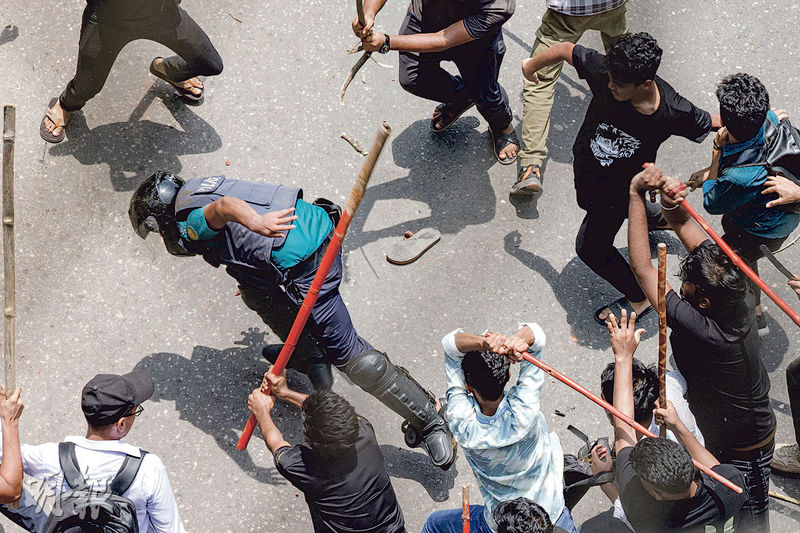【明報專訊】孟加拉學生要求廢除政府公職配額制的示威已持續一個月,本周更演變成暴力衝突,截至昨天(18日)造成至少16死數百傷。示威學生昨天號召全國大罷工,多個城市爆發警民衝突,有示威者持棍追打警員,警方施放催淚氣體及橡膠子彈驅散。當局中斷全國大部分地方的互聯網服務。