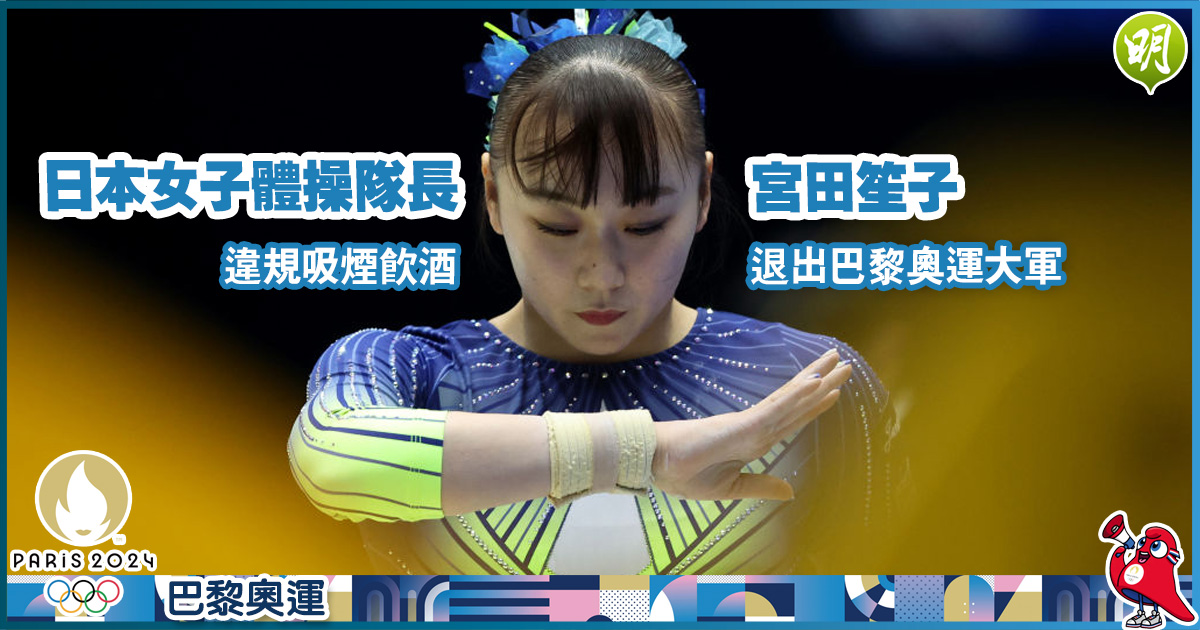 近年表現突出的宮田笙子,於2022年的體操亞洲賽打響名堂,單屆獨取兩銀一銅佳績,並於同年的世界賽女子平衡木摘下銅牌。不過,日本體協今於東京突然召開緊急記者會,公布這名19歲星將因吸煙喝酒行為而須退出巴黎奧運大軍,無緣以日本女子體操隊隊長身分初次征奧。