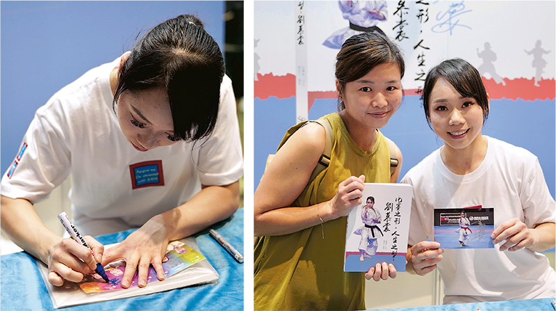 【明報專訊】港隊空手道女子個人形「世一」劉慕裳(Grace)的首本個人自傳《比賽之形、人生之型:劉慕裳》開始發售,她昨於香港書展舉行簽書會,吸引約50名書迷及支持者到場。Grace認為今次體驗很開心,「沒想過有這麼多人,我自己一開始都沒信心」,並透露在巴黎奧運期間客串主持後,便會備戰9月的亞洲賽,力爭衛冕。