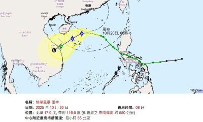 【10:39】天文台表示,過去數小時,南海中部的熱帶低氣壓採取較為偏西的方向移動,組織仍然較為鬆散。預料該熱帶低氣壓會大致移向海南島一帶,今日日間與香港保持超過600公里距離。天文台會在今日黃昏至晚上才考慮發出一號戒備信號。
