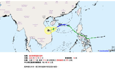 【22:54】天文台於晚上10時40分發出一號戒備信號,表示有一熱帶氣旋,在香港約800公里內,可能影響本港。一號戒備信號會至少維持至明日(21日)早上6時。按照現時預測,該熱帶低氣壓將會有所增強,並會在未來一兩天為廣東沿岸間中帶來狂風驟雨,珠江口一帶離岸和高地在明日稍後風勢逐漸增大。天文台會視乎該熱帶低氣壓與珠江口的距離、強度變化及本地風力的情況,在明日日間評估是否需要改發更高的熱帶氣旋警告信號。