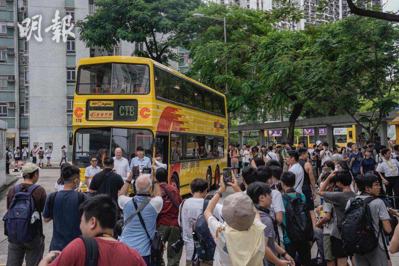 不少市民下午在巴士前拍攝,並排隊換領鑰匙扣紀念品。沙田居民、巴士迷徐先生與5歲兒子到場,他表示以前會搭乘這款巴士去中環上班,最難忘巴士單門設計和絨凳,讚賞還原得好,最喜歡其「大食鬼」標誌。他說如將來如經典巴士可在路面行駛「梗係想去坐」,願意付100元購票。