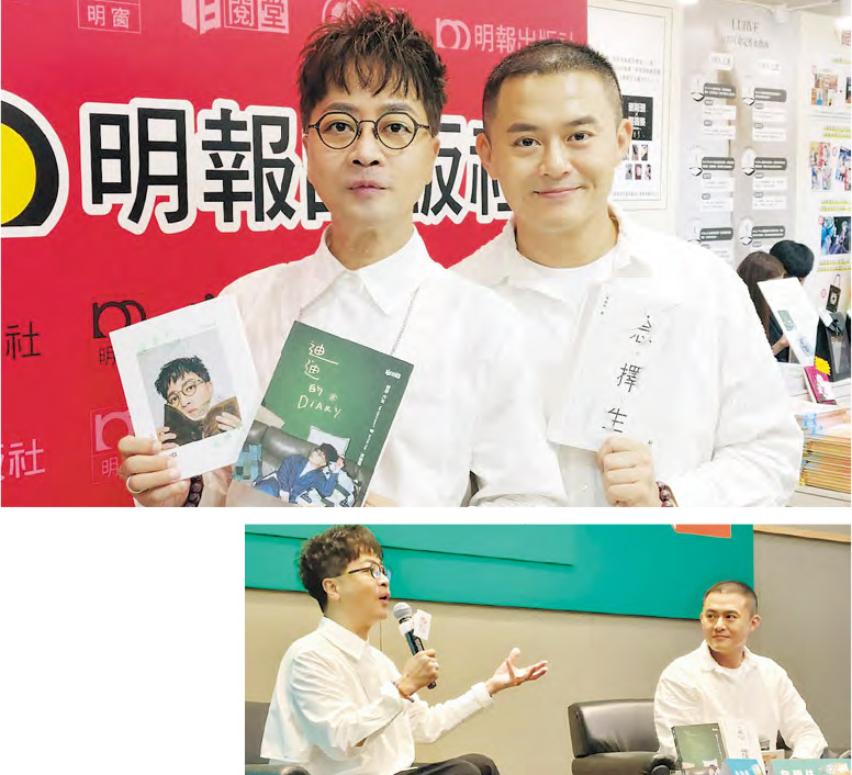 【明報專訊】商台DJ余迪偉與ViuTV節目《總有一瓣喺左近》主持詹朗林(JJ)前晚到書展明報出版社攤位,為兩人分別推出的新書《迪迪的Diary 2》與《念.擇.生》舉行簽名會。余迪偉與詹朗林新書風格截然不同,但理念不謀而合,決定合辦「大捨大得,吾寫吾得」講座。詹朗林自言墨水不夠,無意再執筆,後獲余迪偉鼓勵又介紹出版社,新作得以面世。胡慧中與民政事務局前局長何志平的女兒何嘉珍推出詩集《相信光》,開幕日獲父母撐場,何嘉珍連日到場跟不同讀者交流,日日企六七小時,胡慧中前日到場相伴愛女,大爆女兒性格單純,怕她被欺負。