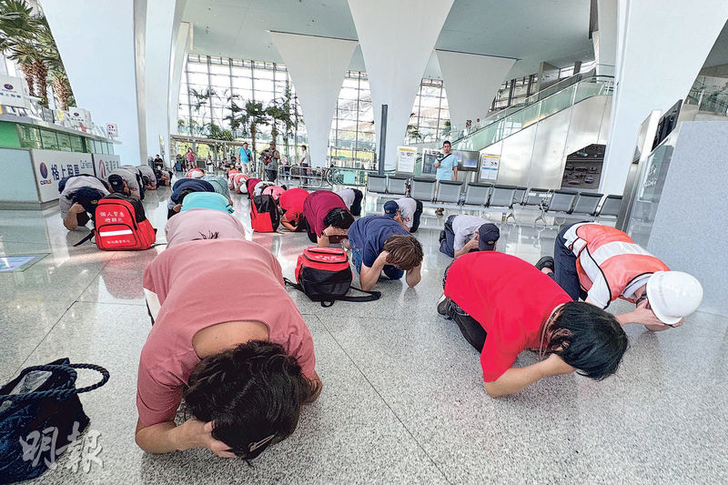 【明報專訊】台灣萬安47號演習昨天在中部7縣市登場,除實施人車管制,地方政府各在重點驗證區演習,模擬包括建築物遭導彈擊中火警搶救、搜救犬救災,甚至設臨時收容中心,讓演習更全面。為配合台軍漢光演習分區實施,並發布「飛彈(導彈)、火箭攻擊台灣特定地區」的空中威脅告警訊息。