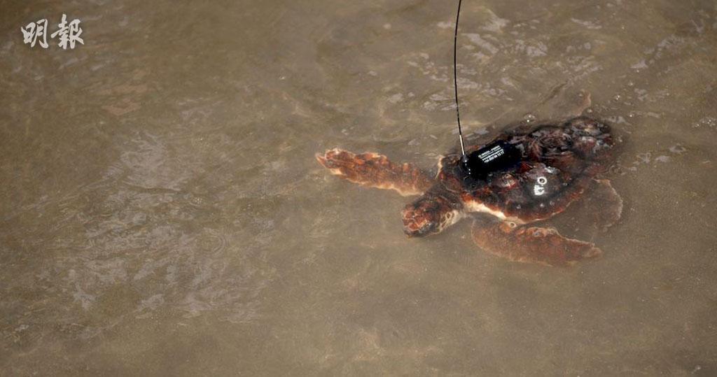 水族館其後收集龜蛋,協助這批赤蠵龜茁壯成長,經過一年照顧後,這批幼年赤蠵龜由初出生重10克,成長到1公斤重。團隊周二(23日)將近50隻龜放回大海,其中10隻戴上GPS追蹤器,讓團隊可了解牠們的活動,追蹤器會隨着貝殼膨脹而脫落,讓牠們繼續踏上「龜途」。(法新社)