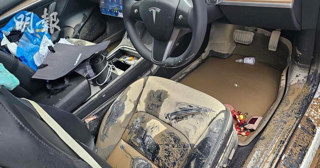 Tesla車主李生指,車輛嚴重入水,當時「架車着燈,響晒Alarm」,故到場處理,他表示現待拖車到場處理,車鎖亦有故障,「見到都唔開心」。