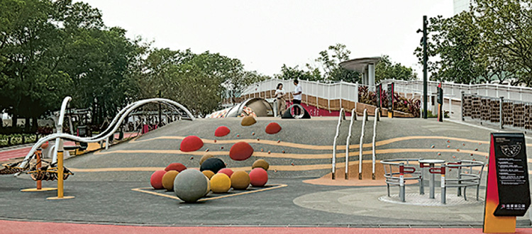 挑戰層次:為配合不同能力的用家,團隊設計同類遊樂體驗時,也特意提供不同難度的挑戰,考平衡的有固定球和動態球,攀爬的有抓手點和徒手玩,玩滑動的則有低斜度滑梯和波浪形鋼條管道。