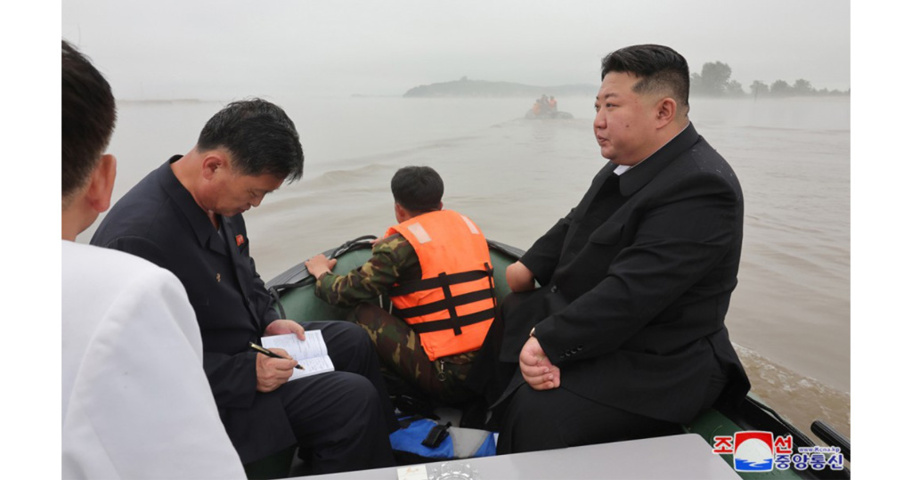 朝中社周三(7月31日)報道,包括新義州的平安北道和慈江道鴨綠江沿岸一帶發生嚴重洪澇暴雨災害,逾4000間住宅和近3000公頃農田受災,鐵路等基建和建築受損。鄰近中國邊境的兩江道金貞淑郡周日(28日)也曾有逾150名居民被洪水圍困,靠空軍直升機救出。周二(30日)的報道附帶金正恩乘坐橡皮艇視察的照片。