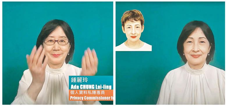 【明報專訊】人工智能(AI)愈趨盛行,個人資料私隱專員公署表示,今年上半年接獲近600宗套取市民個人資料用作詐騙的查詢,較去年同期312宗升近九成,其中有騙徒竄改公開片段,利用官員或名人的圖片或錄音,透過深偽(deepfake)技術製作影片誘騙市民投資。公署昨在YouTube上載短片,由私隱專員鍾麗玲示範以深偽技術實時換臉,包括變成演員馮素波等,提醒市民「有片未必有真相」,應建立「人力防火牆」保障個人資料,避免誤墮個人資料詐騙陷阱。