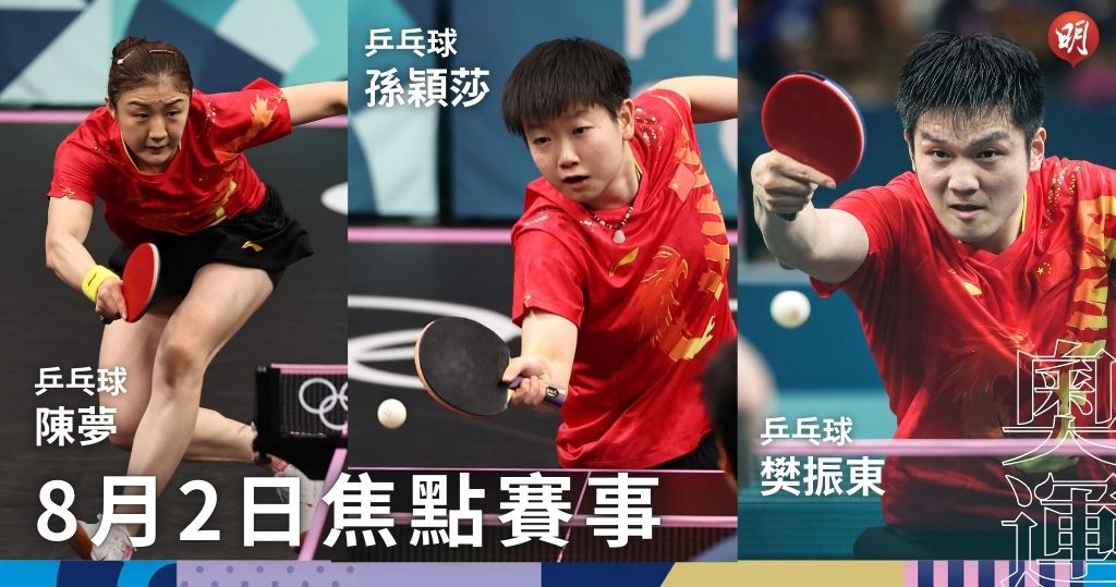 巴黎奧運|8月2日焦點賽事 國乒孫穎莎、陳夢、樊振東爭入決賽 羽毛球混雙爭金【附賽程連結】 (09:50)