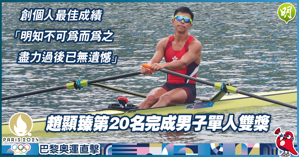 巴黎奧運直擊|港將趙顯臻第20名完成男子單人雙槳創個人最佳:明知不可為而為之已無憾 (19:33)