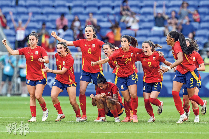 【明報專訊】女足世界盃冠軍西班牙隊昨在巴黎奧運8強落後兩球下,藉末段連入兩球,包括補時8分鐘的入球,以2:2驚險逼和哥倫比亞隊,兩軍加時賽果不變,「狂牛」在互射12碼勝出4:2,首入4強,將與以1:0淘汰東道主法國隊的分組賽手下敗將巴西隊爭入決賽,而德國隊與衛冕之師加拿大隊激戰120分鐘後互交白卷,以互射12碼勝出,4強對手是美國隊。