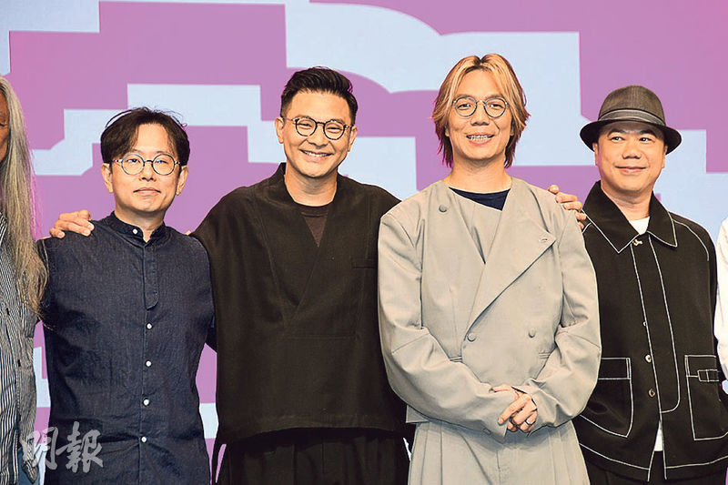 【明報專訊】RubberBand成員繆浩昌(6號)、李兆偉(阿偉)及黎萬宏(泥鯭)昨日跟音樂家雷柏熹到西九戲曲中心出席活動,宣布10月於自由爵士音樂節合作演出。RubberBand表示獲雷柏熹邀請立即答應,阿偉說:「𦧲飯應啦!平時只是睇騷,有機會參與爵士音樂節,覺得是榮幸的事,我們掹車邊參與。」