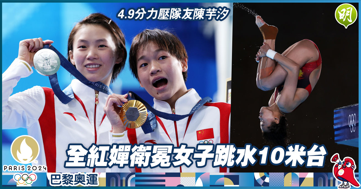 東京奧運金牌得主中國隊的全紅嬋,今晚(6日)在巴黎奧運女子10米跳台決賽以425.60分衛冕,亞軍是其女子雙人10米跳台奪金拍檔及僅輸4.9分的陳芋汐。至此中國跳水隊已在5項比賽囊括5金,亦是國家隊的今屆第22金。