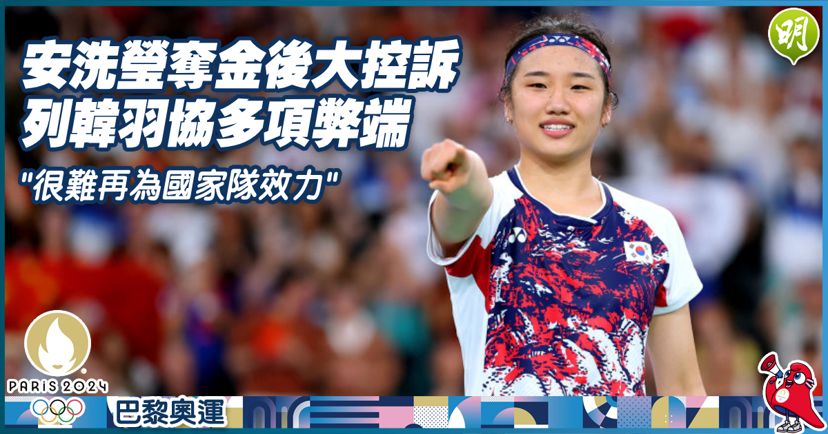 巴黎奧運|安洗瑩奪金後大控訴 列韓羽協多項弊端 「很難再為國家隊效力」 (20:45)