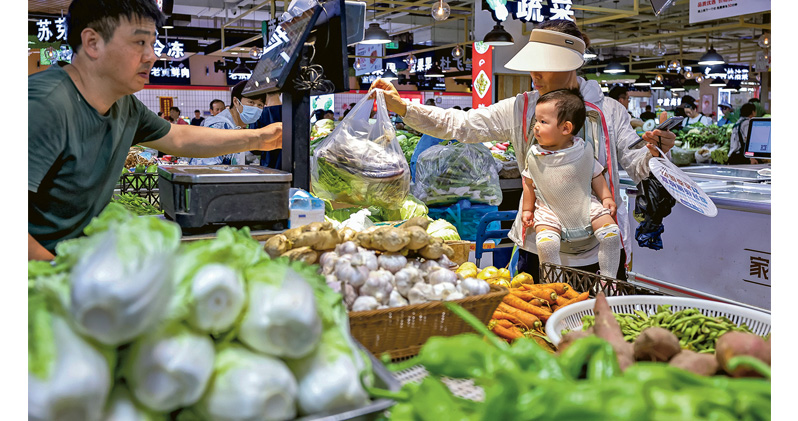 【明報專訊】中國內需恢復速度備受市場關注,國家統計局昨日公布的7月份居民消費物價(CPI)數據顯示,食品價格按年持平,擺脫了連續12個月下跌的走勢,按月亦升1.2%,帶動CPI由6月增0.2%擴大至0.5%,高過市場預期的升0.3%,有分析預計CPI未來幾個月或略為上升,但不阻貨幣政策進一步寬鬆,預料今年人民銀行至少再減息一次。