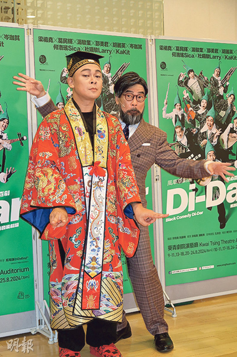 阿葛相隔12年再演舞台劇,謙稱要向新人偷師學習,讚岑珈其教Sica側手翻,後者很快便上手。Sica聞言說:「雖然阿葛是前輩,但合作沒壓力。因他很親民沒架子,有他在場,大家演出安心好多,又會細心分享他的經驗,教我留意咬字發音要清晰。」阿葛上周完成軟硬拉闊音樂會,緊接參演舞台劇,稱劇團很早已找他演校長角色,一早應承,指劇中唱歌跳舞環節只需負責穿插,跟着跳就可以。