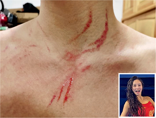 26歲「水球女神」熊敦瀚在社交媒體十分活躍,也被捧為巴奧「十大美女運動員」之一。紅人易惹話題,有網民翻出澳洲水球運動員Tilly Kearns早前在TikTok上的帖子,她展示與中國隊友誼賽前後的對比,訓練後胸口出現抓痕,暗示中國運動員在訓練賽中抓傷了她。