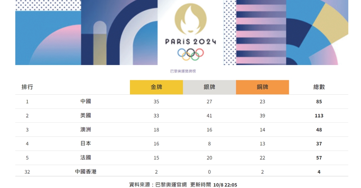 即時熱點 巴黎奧運奬牌榜|國家隊藝術體操團體全能、舉重各添1金 累計35金 (22:05) 發佈於 1 年 前 2024 年 8 月 10 日 By 明報 【22:05】巴黎奧運第15日,國家隊在藝術體操團體全能項目首奪金牌;男子舉重102公斤級決賽,劉煥華摘金。國家隊累計35金27銀23銅,居獎牌榜首位。8月10日滾動即時戰報 巴黎奧運專題報道:shorturl.at/zcQOH 國家隊相關報道:shorturl.at/dcOD3 港隊相關報道:shorturl.at/JVf7z 相關文章:shorturl.at/dcOD3shorturl.at/JVf7z奧運熱點奬牌榜巴黎奧運熱門HOTPICK編輯推介 Up Next 上海連續12日37°C或以上 徐家匯站高溫破152年酷暑日連續最長紀錄 (14:34) 不要錯過 天氣|天文台:周六有幾陣驟雨 日間酷熱市區最高33℃ (18:30) 繼續閱讀 贊助商 猜你喜歡 失眠|退熱貼包尾指助眠?中醫:對心煩燥熱難入眠者或有效 四肢冰冷、虛寒者忌用【附2款安眠茶飲】 (16:50) 全運會2025|短片:啟德體育園傳火炬 教師帶學生現場感受「很開心」 (12:49) 短片:維港海上大巡遊 多啦A夢Labubu充氣雕塑漫遊維港 (17:48) 全運會火炬傳遞周日舉行 香港路線一文睇 政總出發至啟德體育園 (15:56) 白宮發放習特會照片引熱議 特朗普展示紙卡 習近平瞇眼笑【多圖】 (15:09) 香港世一系列·短片|玩搖搖28年熱情依舊 世界搖搖大賽「世一」黃偉鑠:搖搖千變萬化連繫人與人 (12:48)