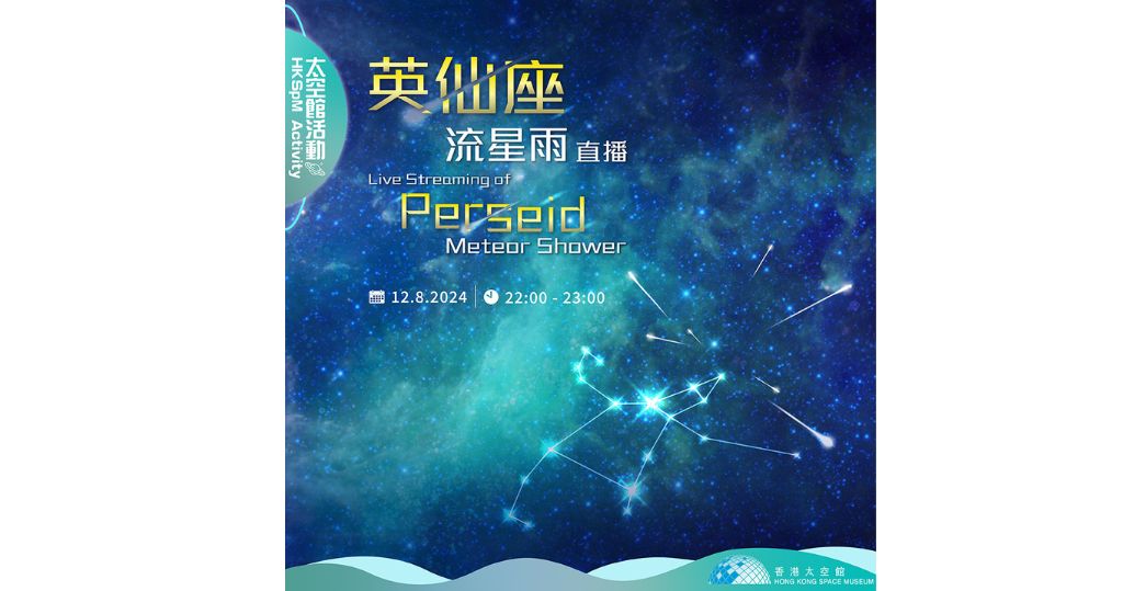 英仙座流星雨將於下周一(8月12日)達高峰期,太空館將於當晚10時至11時透過YouTube網上直播,屆時太空館助理館長張頴珊將講解觀賞流星雨的方法和天文知識。香港太空館在facebook指出,英仙座流星雨的輻射點會在當晚約10時從東北方升起,隨着輻射點位置升高,流星的數量會隨之增加,建議可在晚上約11時半月亮下山後觀賞流星雨。在8月13日凌晨時分,若身處視野廣闊及光害較少的地點,有機會在1小時內看到超過10顆流星。【太空館YouTube頻道:www.youtube.com/@hkspacem】