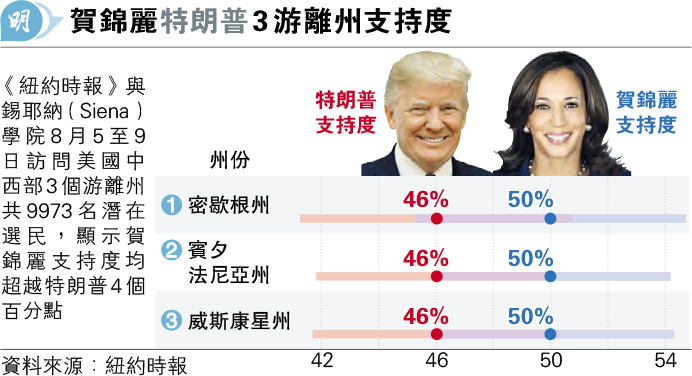 三大游離州 賀錦麗支持度超特朗普