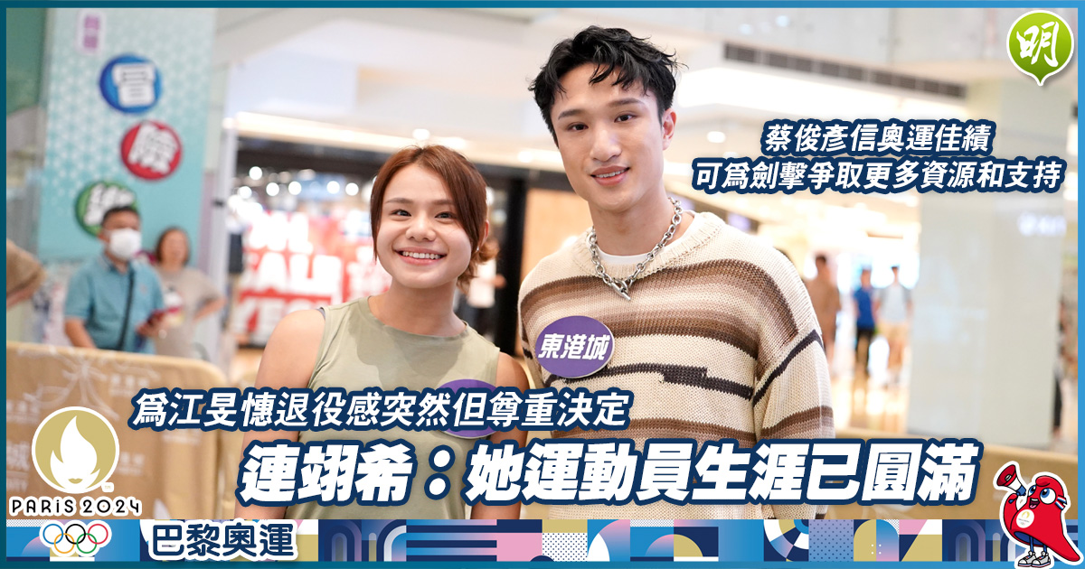 無緣連續兩屆征奧的女子重劍港將連翊希(Coco),今屆巴黎奧運以電視台評述身分見證隊友江旻憓(Vivian)歷史性奪金,她今午(11日)出席假將軍澳舉辦的「東港城運動音樂會暨祝捷派對」時坦言,對Vivian的退役決定「有點突然」,但認為對方運動員生涯已圓滿,尊重其決定。