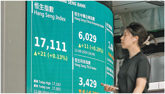 【明報專訊】美國聯儲局理事上周放鷹,指通脹仍存上行風險,近期失業率上升可能誇大了勞動市場的降溫速度。彭博最新調查顯示,經濟師料美聯儲局9月減息0.25厘,而非市場預期的0.5厘。市場觀望美國本周公布的通脹及零售等數據,以及騰訊(0700)及阿里巴巴(9988)本周公布業績,恒指窄幅上落,昨日收報17,111點,升0.13%,全日波幅僅160點,為逾3周最窄。大市成交縮減至703億元(見圖),為近半年最少。