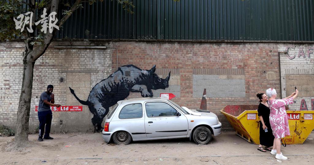 英國著名塗鴉大師Banksy再有新作。Banksy周一(12日)在Instagram發布倫敦東南部新作照片,可見一隻犀牛看似正爬上一架車。今次是他動物主題塗鴉第八幅作品。