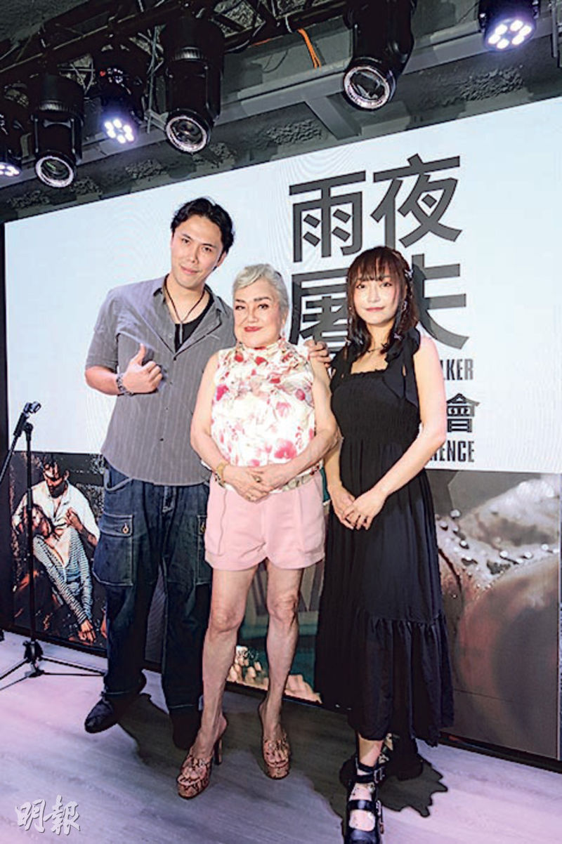 【明報專訊】邵音音、霍哥(霍俊邦)及雪兒昨日到銅鑼灣出席電影《雨夜屠夫》發布會。霍哥片中飾演雨夜屠夫林國仁,雪兒演被他肢解的受害者,要背部裸露,兩人亦有些身體接觸。他們表示已拍了幾場戲,大家專心演戲不覺尷尬。霍哥沒想過會參演此片,因並非試鏡取得角色,是跟導演鄧東明傾偈時,對方覺得他有黑暗感覺,所以邀他演出,「導演這樣說,不知該不該開心。我未演過殺人犯,還有肢解場面,事前睇很多有關殺人犯心理書籍和肢解片,這些片很血腥,初看時真的想嘔」。談到電影鬧雙胞,周殷廷執導的《雨夜之徒》亦以林過雲為題材。霍哥稱不介意,相信故事和拍攝角度會有不同。