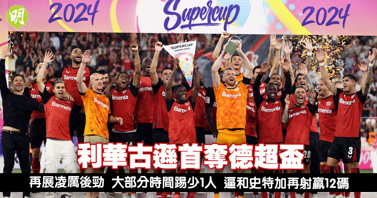 利華古遜今晨(18日)在德國超級盃延續上季後勁凌厲的強勢,雖大部分時間少踢一人,但仍力戰至88分鐘破門逼和史特加2:2後,再於互射12碼階段贏4:3,4個月內接連在國內3項賽事德甲、德國盃和德超盃封王,為周六凌晨的新一季聯賽開鑼戰壯行色。