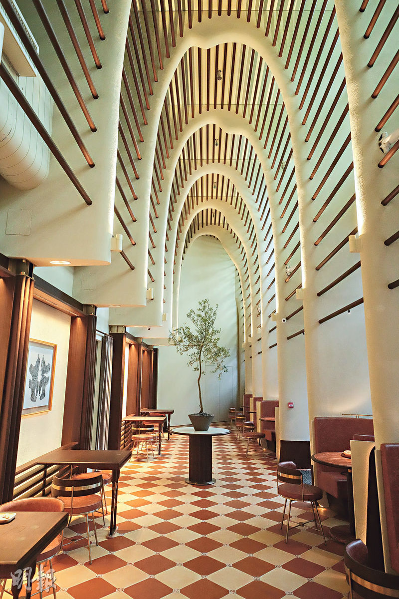 不過,要數店內最驚艷的打卡位,一定要走到靠近公園入口的偏廳。歐陸式設計,超高拱形樓底一層一層延伸,空間既長又深,感覺莊嚴華麗,就如走入教堂聖殿一般,立時令人平靜下來。大面積落地玻璃,陽光灑進,用餐區充滿溫暖光線,令人更期待接下來的美食。