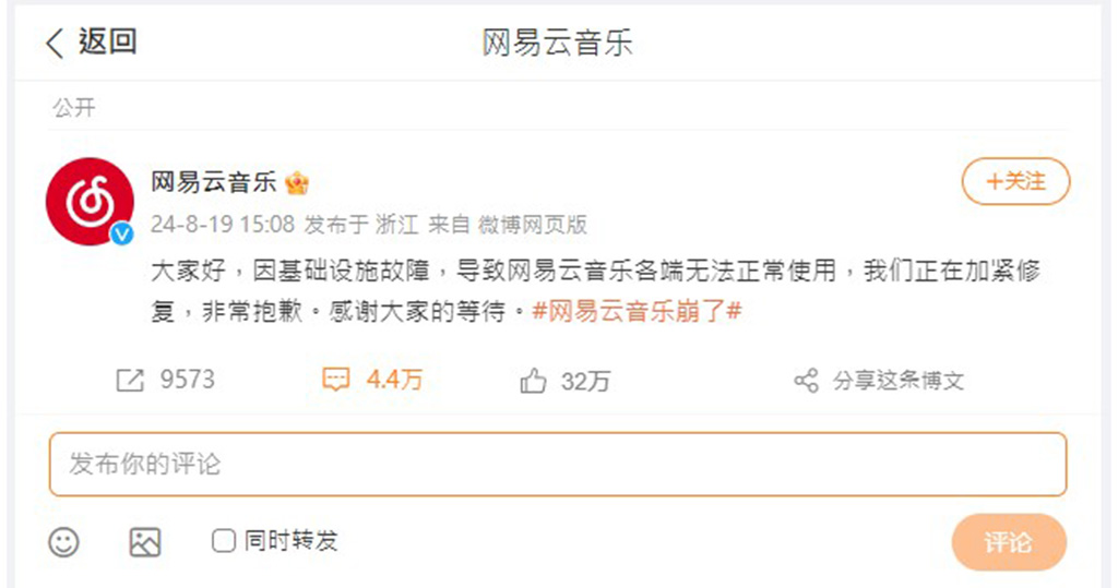 即時兩岸 網易雲音樂一度故障逾兩小時 相關服務已恢復 (17:51) 發佈於 1 年 前 2024 年 8 月 19 日 By 明報 內地最大音樂串流平台之一、港股上市的「網易雲音樂」(9899)今天(19日)下午突然無法使用,官方下午3時通告稱基礎設施故障導致無法正常使用,正在加緊修復。相關服務下午5時左右恢復。 今日下午2時許開始,陸續有網民發現「網易雲音樂」出現異常,訪問官網顯示錯誤代碼「502 Bad Gateway」,「網易雲音樂崩了」隨即衝上內地各大社交平台熱搜。(綜合報道) 相關文章:網易雲音樂編輯推介 Up Next 越南農產輸華添三寶 凍榴蓮 鮮椰子 鱷魚肉 (00:16) 不要錯過 嘉興火鍋店逾10客暈倒送院 (16:02) 繼續閱讀 贊助商 猜你喜歡 恒指挫222點 再失二萬五關