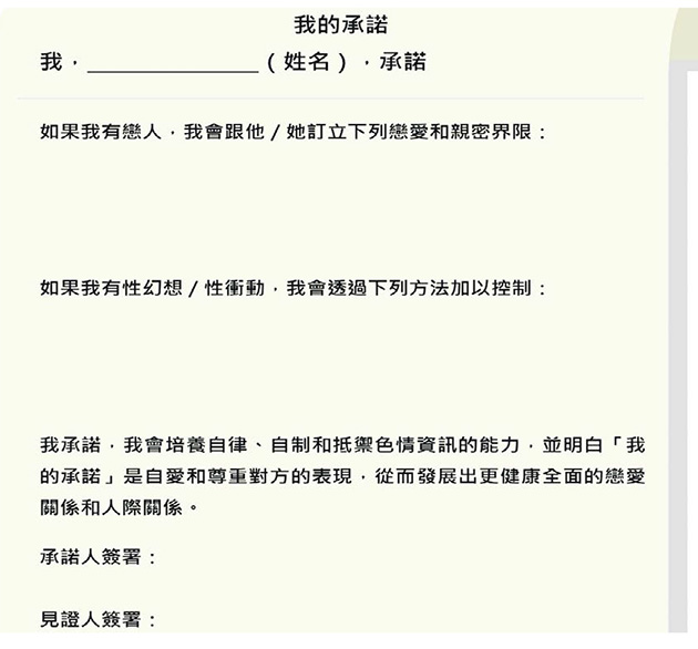 促學生設親密界限 承諾抵禦色情