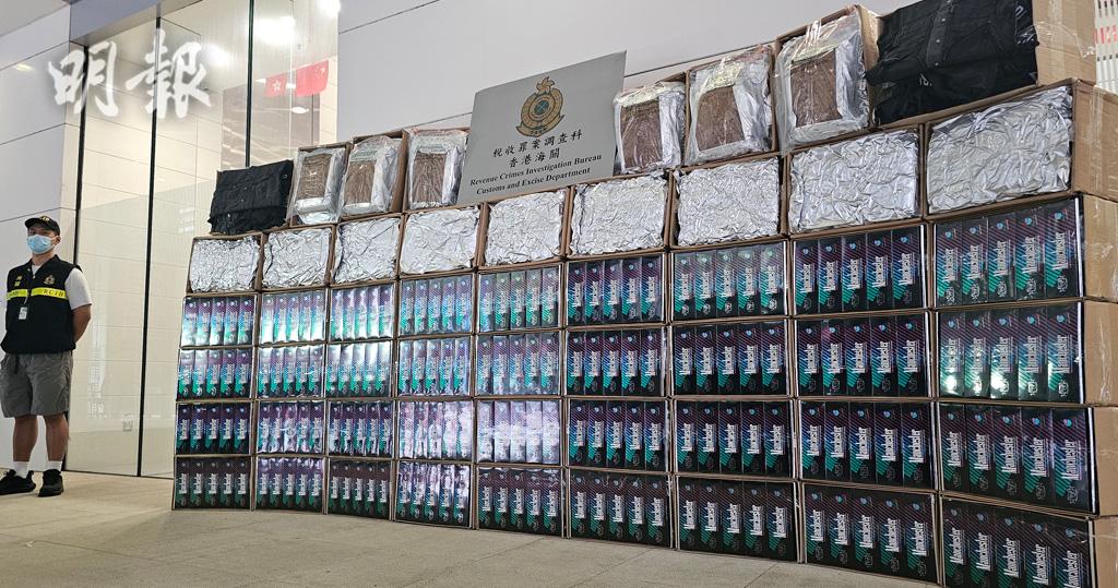 香港海關稅收罪案調查科高級督察梁啟聰表示,昨日中午,海關在一個約1500呎的鐵皮倉外,截停兩名內地男子,當時他們正準備離開倉庫,經搜查後關員在倉內搜出約700公斤未完税製成煙草,遂押解兩人到元朗逢吉鄉另一個鐵皮倉作跟進調查,在約1000呎的貨倉內再檢獲約41萬支懷疑私煙,經調查同日下午約5時半,關員再押解兩人到粉嶺沙頭角公路一個物流貨倉作進一步調查,再檢獲1540公斤懷疑未完税製成煙草。