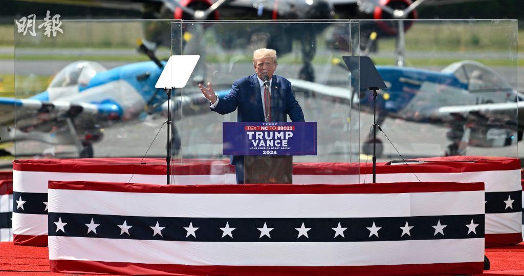 美國前總統、共和黨總統候選人特朗普周三(21日)在北卡羅萊納州舉行競選集會,是他自7月13日遇刺受傷後首場戶外競選集會。會場保安明顯加強,台上設置多塊防彈玻璃,特朗普和副手萬斯上台發言時,前後都受防彈玻璃包圍保護,會場附近屋頂亦部署多名狙擊手。
