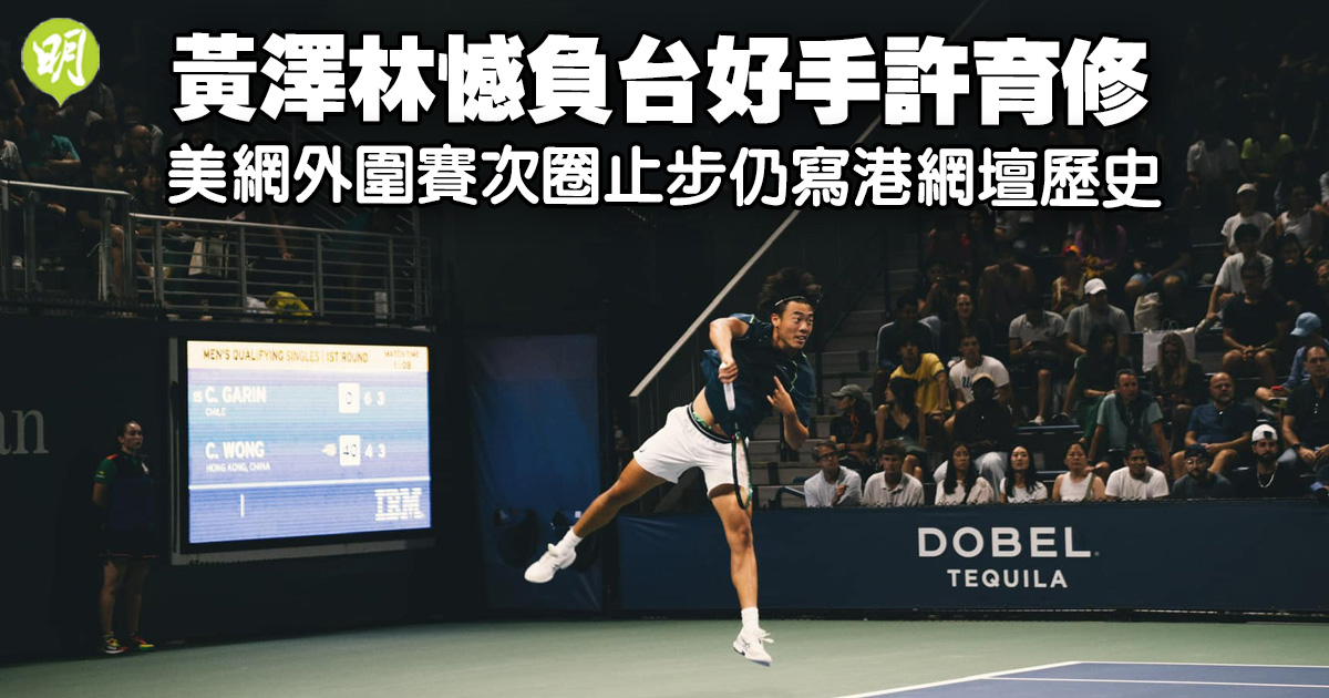 港隊網壇一哥黃澤林(Coleman)今晨(22日)在美國網球公開賽外圍賽男單次圈,激戰3盤至決勝局僅負25歲中華台北好手許育修,雖未能再晉一級,但仍寫下香港網球在成人大滿貫最佳成績。
